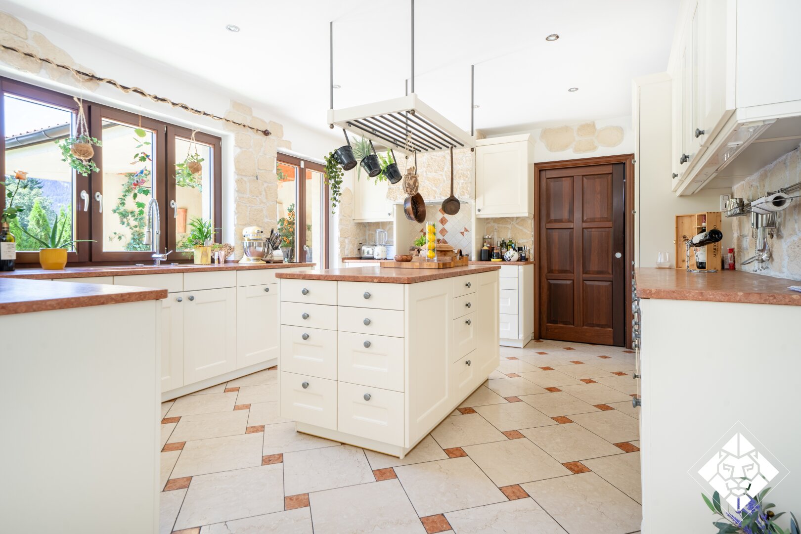 Das Haus bietet eine Wohnfläche von ca. 347 qm, ergänzt durch großzügige Terrassen, eine Doppelgarage, Abstellflächen sowie hochwertig ausgeführte Innenräume. Bodentiefe Fenster, edle Stein- und Parkettböden, Fußbodenheizung, Kamin sowie ein beheizter Außenpool mit Wellnessanschluss garantieren ein Wohngefühl auf höchstem Niveau. Jeder Raum ist durchdacht gestaltet und mit Materialien von erlesenster Qualität ausgestattet.