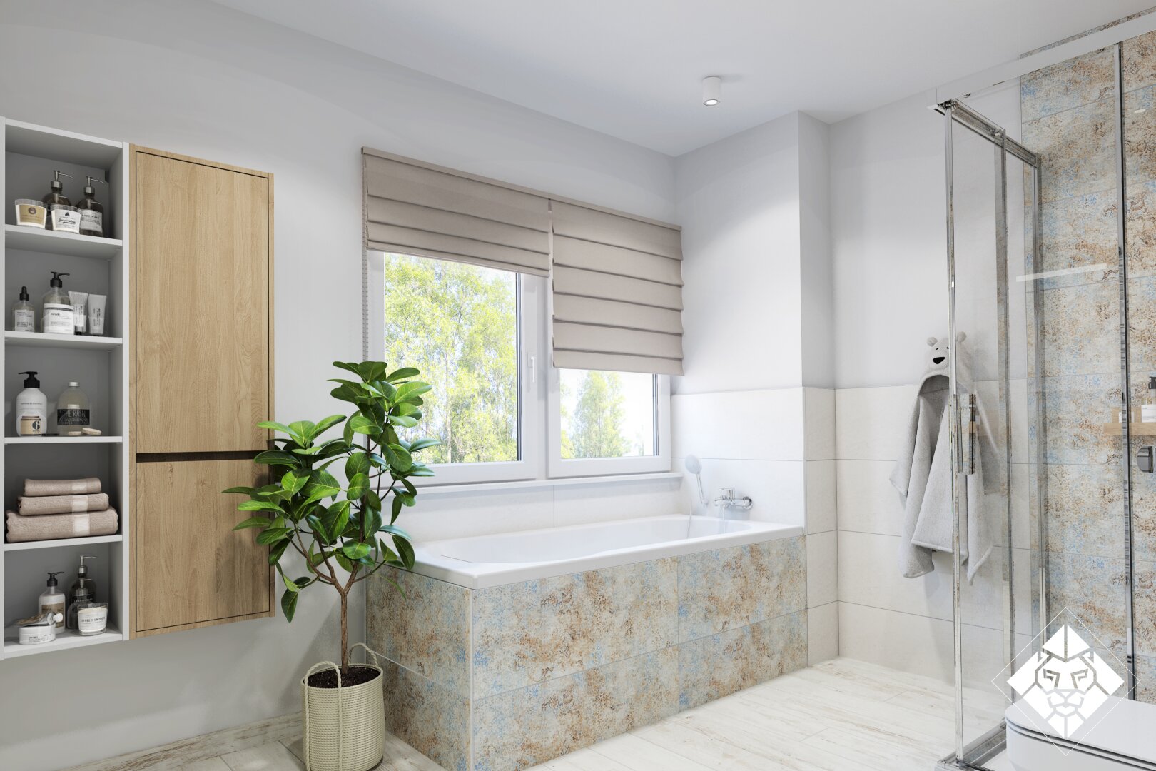 • Badausstattung: Dusche, Badewanne, Fenster im Badezimmer