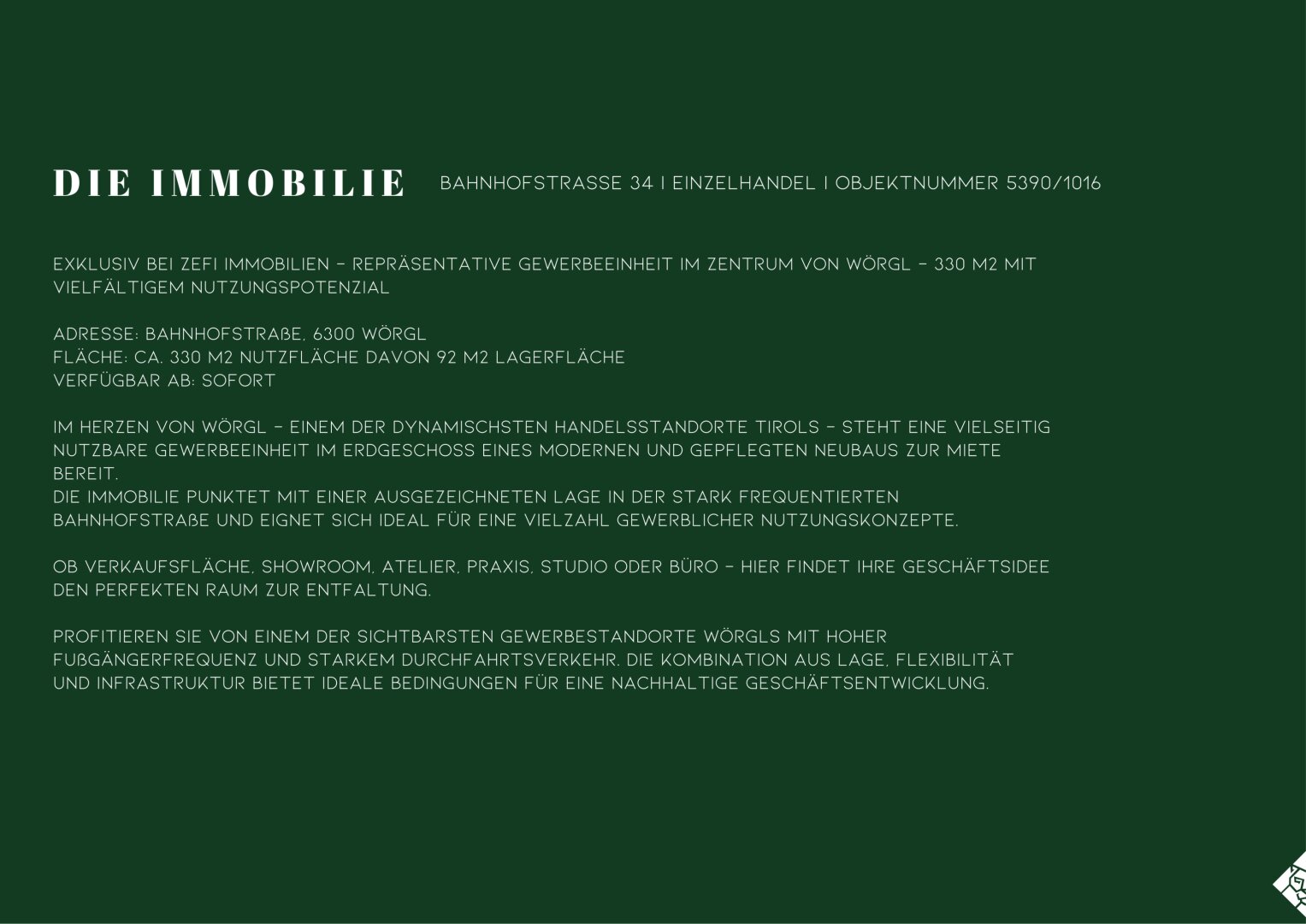 Exklusiv bei Zefi Immobilien - Repräsentative Gewerbeeinheit im Zentrum von Wörgl – 330 m² mit vielfältigem Nutzungspotenzial
