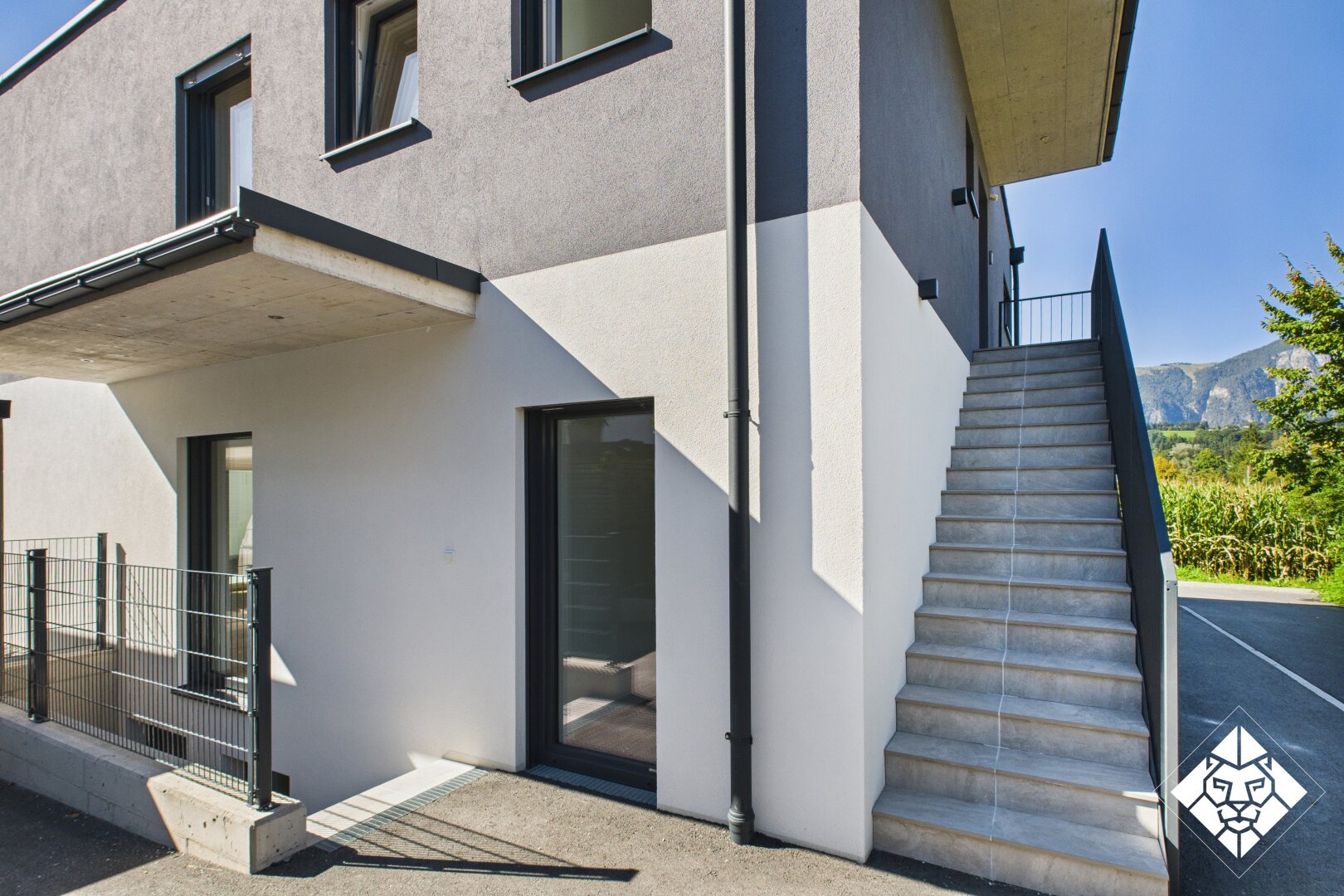 Das Gebäude überzeugt durch klare Linien, großzügige Fensterflächen und eine harmonische Einbindung in die grüne Umgebung. Beide Wohnungen sind hochwertig ausgestattet und bieten durchdachte Grundrisse, die Funktionalität und Wohngefühl perfekt verbinden.